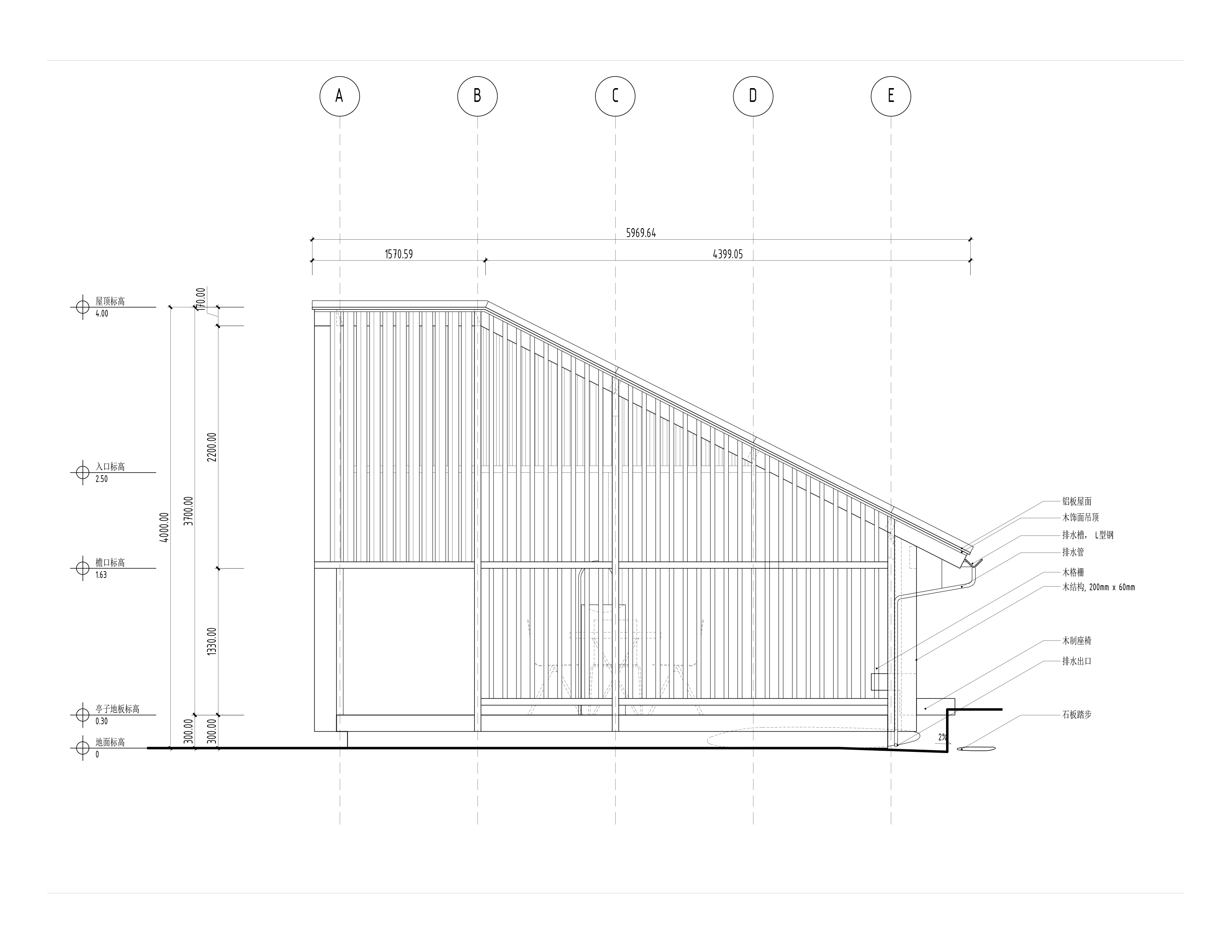 亭子的立面图案借用了庭院后墙上的栏杆设计。我们试图利用这一场地中无法避免的视觉噪音